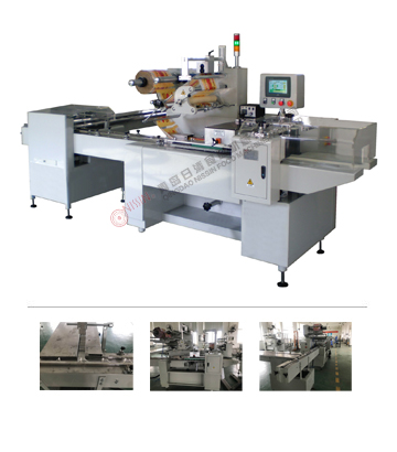 適用于多枚餅干的無托盤集合大包裝,方、圓、橢圓等各種形狀餅干皆可。? 主要技術參數:? 包裝能力:30-120包/分(據包裝膜材質,厚度及包裝規格確定)? 包裝規格:長80-240mm,寬30-90mm,高30-80mm? 總機尺寸:(三伺服)主機部分:4020mm*1200mm? (五伺服)主機部分:4600mm*1260mm? 裝機總容量:(三伺服)5.2KW, 三相380V, 50Hz? (五伺服)8.2KW, 三相380V, 50Hz? 總重量:1500kg? 包裝材料:紙/PE,OPP/PE,OPP/AL/PE等適合于加熱封口的包裝材料